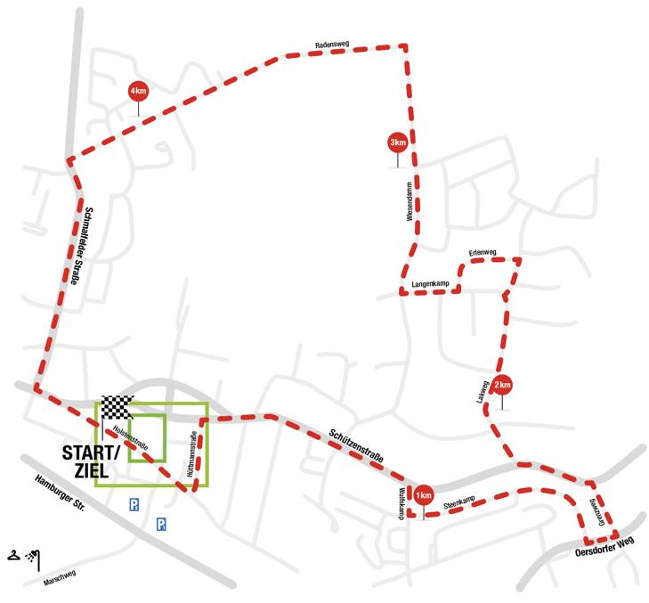 Holstenstraße – Hüttmannstraße – Schützenstraße – Wulfskamp – Steenkamp – Oersdorfer Weg – Grenzweg – Schützenstraße – Lakweg – Erlenweg – Langenkamp – Wiesendamm – Radensweg – Schmalfelder Straße – Königstraße